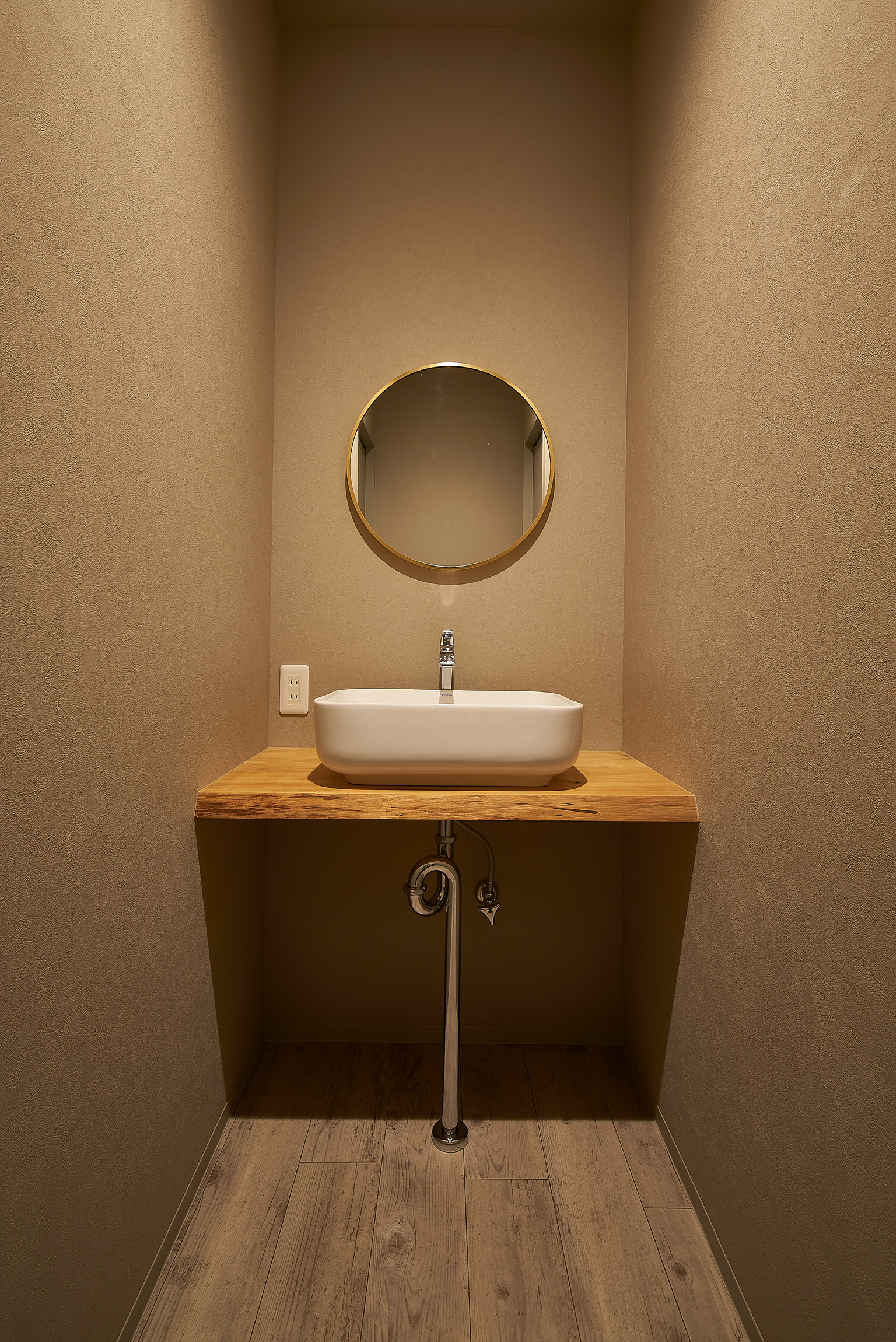 受付カウンターやアーチの開口、丸ミラー、ライン照明など、ポイントをきかせて“クラシカルだけど親しみやすい”空間にまとめました。