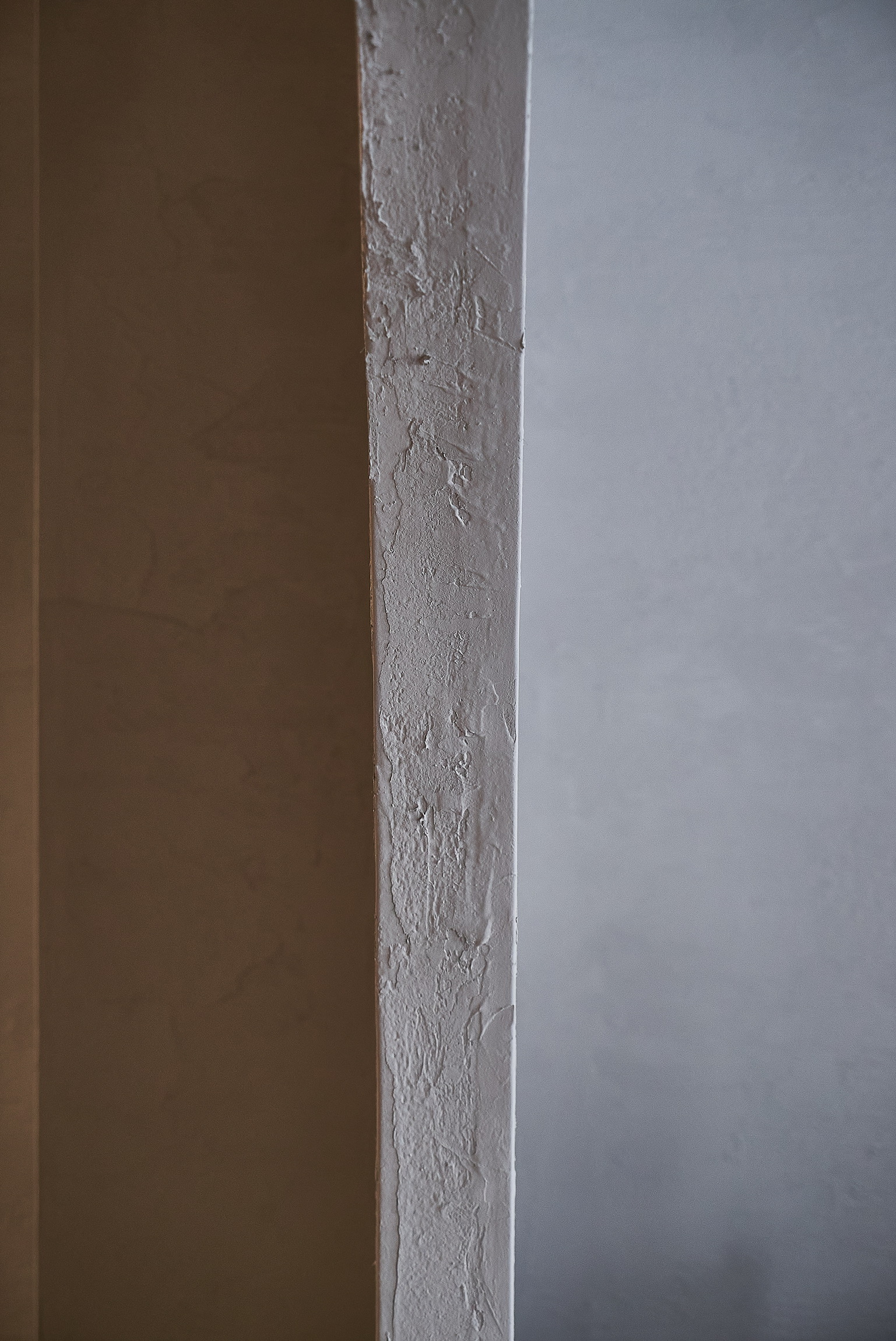 壁は全面漆喰。色は“laula様専用”に調色したオーダーグレーで、光の当たり方でほんのり表情が変わります。